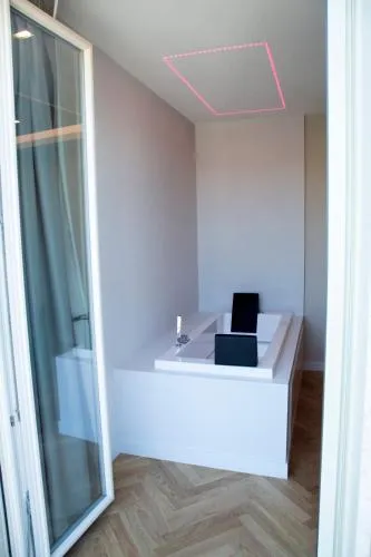 This suite features a hot tub and a sauna. This suite features 1 living room, 1 separate bedroom and 1 bathroom with a bath and free toiletries. The air-conditioned suite features a flat-screen TV with streaming services, soundproof walls, a minibar, a wardrobe as well as city views. The unit has 1 bed.
