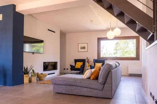 This holiday home features a fireplace. Boasting a private entrance, this air-conditioned holiday home features 1 living room, 2 separate bedrooms and 3 bathrooms with a shower and a bidet. Guests will find a stovetop, a refrigerator, a dishwasher and kitchenware in the well-fitted kitchen. The holiday home also comes with a barbecue. The spacious holiday home features a flat-screen TV with satellite channels, a washing machine, a coffee machine, a seating area as well as garden views. The unit has 3 beds.