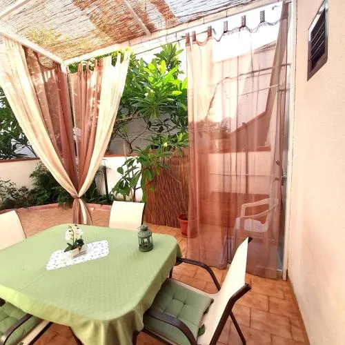 Doccia, TV, Aria condizionata, Asciugacapelli, Ferro da stiro, Angolo cottura, Radio, Frigorifero, Ferro e asse da stiro, Zona soggiorno, Prodotti da bagno in omaggio, Lettore CD, Ventilatore, WC, Patio, Bagno privato, Riscaldamento, Cucina, Vasca o doccia, TV a schermo piatto, Ingresso indipendente, Divano, Pavimento in marmo o in piastrelle, Zona pranzo, Utensili da cucina, Zanzariera, Armadio o guardaroba, Piano cottura, Tostapane, Barbecue, Bidet, Prodotti per le pulizie, Terrazza, Asciugamani, Biancheria per la casa, Tavolo da pranzo, Arredamento da esterno, Zona pranzo all'aperto, Intera unità situata al piano terra, Indipendente, Appartamento privato in edificio, Stand appendiabiti, Stendibiancheria, Bottiglia d'acqua, Pattumiere, Calici da vino, Lettini e culle per bambini, Shampoo, Bagnoschiuma, Presa elettrica vicino al letto, Cuscino non di piume, Vista cortile interno, Estintori, Aria condizionata indipendente in ogni alloggio