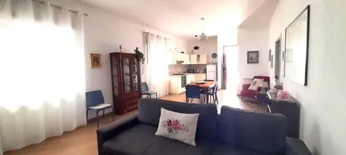 Featuring a private entrance, this air-conditioned holiday home is comprised of a kitchen, 2 bedrooms and 1 bathroom with a shower and a bidet. Guests will find a stovetop, a refrigerator, kitchenware and a toaster in the fully equipped kitchen. The holiday home also has a barbecue. Boasting a terrace with an inner courtyard view, this holiday home also offers a seating area and a flat-screen TV. The unit offers 3 beds.