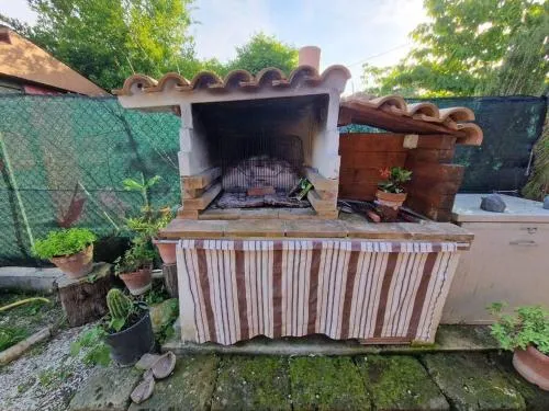 This holiday home features a fireplace. Boasting a private entrance, this holiday home also includes 2 bedrooms, a seating area and 1 bathroom with a shower and a bidet. Guests will find a stovetop, a refrigerator, kitchenware and an oven in the fully equipped kitchen. The holiday home also features a barbecue. The holiday home offers a washing machine, soundproof walls, a dining area, a flat-screen TV, as well as garden views. The unit has 3 beds.