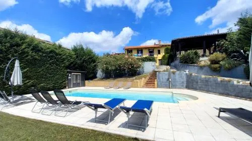 This holiday home features a pool with a view and a hot tub. Boasting a private entrance, this air-conditioned holiday home features 2 living rooms, 3 separate bedrooms and 2 bathrooms with a bath and a shower. Guests will find a stovetop, a refrigerator, a dishwasher and kitchenware in the well-equipped kitchen. The holiday home also comes with a barbecue. The spacious holiday home features a washing machine, a coffee machine, a seating area as well as a terrace with garden views. The unit has 4 beds.