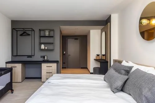 Suite climatizzata dotata di 2 camere da letto e di 1 bagno con bidet e doccia a filo pavimento. Questa suite dispone di TV a schermo piatto, pareti insonorizzate, minibar, set per la preparazione di tè e caffè e vista sul giardino. L’alloggio include 2 letti.