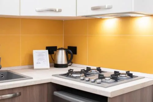Bollitore tè/macchina caffè, Doccia, TV, Aria condizionata, Asciugacapelli, Angolo cottura, Frigorifero, Zona soggiorno, Prodotti da bagno in omaggio, WC, Bagno privato, Canali satellitari, Cucina, Canali via cavo, TV a schermo piatto, Pavimento in marmo o in piastrelle, Vista, Zona pranzo, Bollitore elettrico, Utensili da cucina, Armadio o guardaroba, Piano cottura, Bidet, Asciugamani, Biancheria per la casa, Tavolo da pranzo, Piani superiori accessibili solo tramite scale, Stand appendiabiti, Carta igienica, Copriprese di sicurezza per bambini, Divano letto, Bottiglia d'acqua, Pattumiere, Lettini e culle per bambini, Shampoo, Bagnoschiuma, Presa elettrica vicino al letto, Cuscino ipoallergenico, Alloggio accessibile tramite ascensore, Vista cortile interno, Servizio streaming (per es. Netflix), Accesso con chiavi, Accesso con chiavi magnetiche, Aria condizionata indipendente in ogni alloggio, Gel igienizzante per le mani