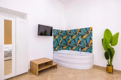 Offering free toiletries and bathrobes, this family room includes a private bathroom with a shower, a bidet and a hairdryer. In the well-equipped kitchen, guests will find a stovetop, a refrigerator, kitchenware and an oven. The air-conditioned family room offers a flat-screen TV, a dining area, a wardrobe, heating as well as an inner courtyard view. The unit offers 1 bed.