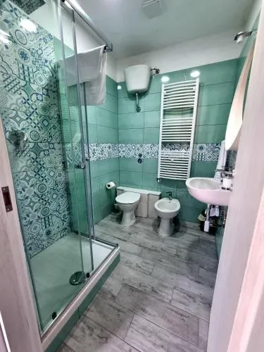 Ampia camera familiare dotata di aria condizionata, set per la preparazione di tè e caffè, bagno privato munito di doccia e balcone con vista città. L’alloggio presenta 3 letti.