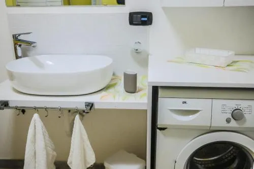Doccia, TV, Aria condizionata, Asciugacapelli, Ferro da stiro, Balcone, Frigorifero, Zona soggiorno, Prodotti da bagno in omaggio, WC, Forno a microonde, Lavatrice, Bagno privato, Riscaldamento, Cucina, Vasca o doccia, TV a schermo piatto, Divano, Pavimento in marmo o in piastrelle, Zona pranzo, Utensili da cucina, Zanzariera, Armadio o guardaroba, Piano cottura, Bidet, Macchina da caffè, Asciugamani, Biancheria per la casa, Tavolo da pranzo, Intera unità situata al piano terra, Appartamento privato in edificio, Stand appendiabiti, Carta igienica, Divano letto, Bottiglia d'acqua, Pattumiere, Calici da vino, Shampoo, Balsamo, Bagnoschiuma, Cuffia da doccia, Presa elettrica vicino al letto, Cuscino non di piume, Cuscino ipoallergenico, Servizio streaming (per es. Netflix), Allarme antifumo, Estintori, Aria condizionata indipendente in ogni alloggio