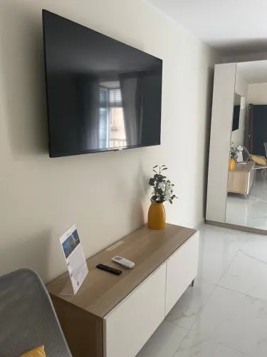 The quadruple room features air conditioning, a washing machine, as well as a private bathroom boasting a shower and a bidet. The well-fitted kitchen has a stovetop, a refrigerator, kitchenware and an oven. The quadruple room offers soundproof walls, a tea and coffee maker, a wardrobe, a high chair for children, as well as a flat-screen TV. The unit has 2 beds.