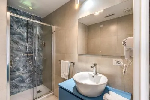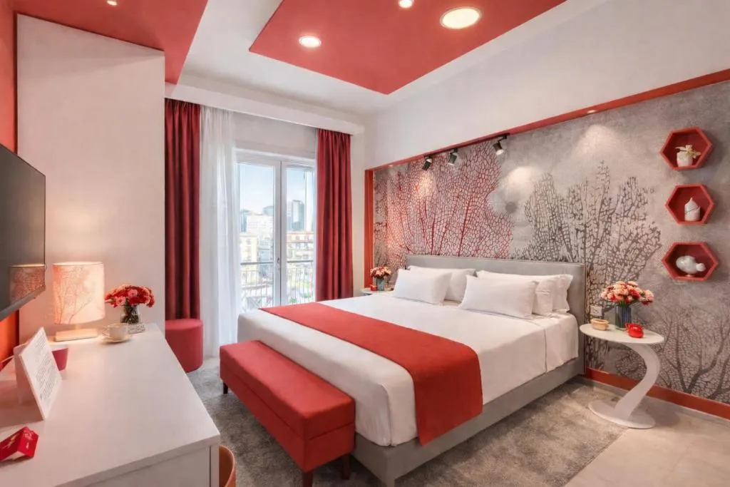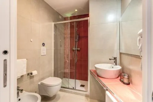 Doccia, TV, Aria condizionata, Asciugacapelli, Ferro da stiro, Balcone, Frigorifero, Scrivania, WC, Bagno privato, Riscaldamento, TV a schermo piatto, Pavimento in marmo o in piastrelle, Vista, Zanzariera, Armadio o guardaroba, Bidet, Vista luogo di interesse, Soluzioni anallergiche, Vista città, Terrazza, Asciugamani, Biancheria per la casa, Carta igienica, Divano letto, Teli, Bottiglia d'acqua, Pattumiere, Shampoo, Bagnoschiuma, Presa elettrica vicino al letto, Cuscino ipoallergenico, Alloggio accessibile tramite ascensore, Allarme antifumo, Estintori, Accesso con chiavi magnetiche, Rilevatore di monossido di carbonio, Fonti di monossido di carbonio, Purificatori d'aria, Aria condizionata indipendente in ogni alloggio