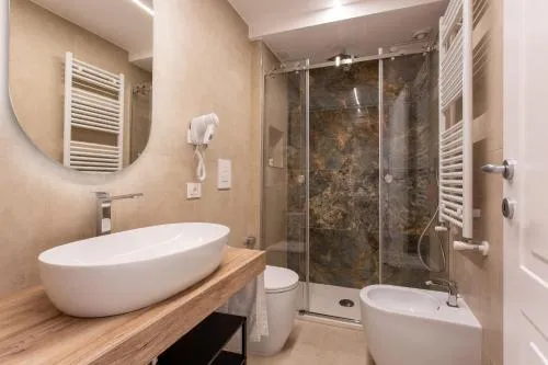 Bollitore tè/macchina caffè, Minibar, Doccia, Cassaforte, TV, Aria condizionata, Asciugacapelli, Ferro da stiro, Balcone, Accappatoio, Frigorifero, Scrivania, Ferro e asse da stiro, Zona soggiorno, Prodotti da bagno in omaggio, Ventilatore, WC, Forno a microonde, Patio, Bagno privato, Letti lunghi (oltre 2 metri), Riscaldamento, Cabina armadio, Pantofole, Canali satellitari, Canali via cavo, Vasca o doccia, Servizi igienici aggiuntivi, TV a schermo piatto, Ingresso indipendente, Insonorizzazione, Pavimento in marmo o in piastrelle, Vista, Zona pranzo, Bollitore elettrico, Zanzariera, Armadio o guardaroba, Tostapane, Bidet, Vista giardino, Macchina da caffè, Vista città, Terrazza, Asciugamani, Biancheria per la casa, Tavolo da pranzo, Zona pranzo all'aperto, Piani superiori accessibili solo tramite scale, Stand appendiabiti, Carta igienica, Campanello di emergenza nel bagno, Sedia per doccia, Bottiglia d'acqua, Cioccolatini o biscotti, Pattumiere, Lettini e culle per bambini, Shampoo, Balsamo, Bagnoschiuma, Cuffia da doccia, Presa elettrica vicino al letto, Adattatore, Cuscino di piume, Cuscino non di piume, Cuscino ipoallergenico, Vista cortile interno, Vista su strada tranquilla, Servizio streaming (per es. Netflix), Armadietti, Allarme antifumo, Estintori, Accesso con chiavi, Accesso con chiavi magnetiche, Rilevatore di monossido di carbonio, Purificatori d'aria, Aria condizionata indipendente in ogni alloggio, Gel igienizzante per le mani