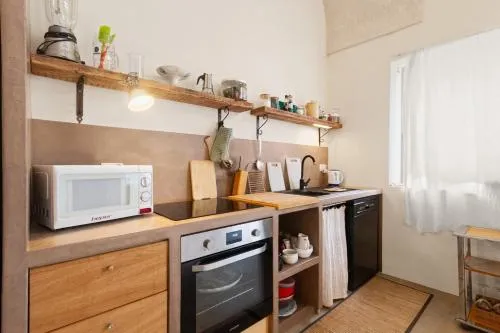 Featuring a private entrance, this air-conditioned holiday home consists of 1 living room, 1 separate bedroom and 1 bathroom with a shower and a bidet. Guests will find a stovetop, a refrigerator, a dishwasher and kitchenware in the fully equipped kitchen. The holiday home also offers a barbecue. The holiday home features a washing machine, a seating area, a wardrobe as well as a terrace with city views. The unit offers 2 beds.