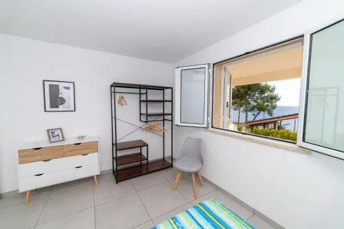 Boasting a private entrance, this air-conditioned holiday home comes with 1 living room, 2 separate bedrooms and 2 bathrooms with a walk-in shower and a bidet. The fully equipped kitchen has a stovetop, a refrigerator, a dishwasher and kitchenware. The spacious holiday home features a washing machine, Smartphone, a coffee machine as well as a terrace with sea views. The unit has 5 beds.