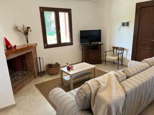 This villa's special features are the pool with a view and the fireplace. Featuring a private entrance, this air-conditioned villa is comprised of 1 living room, 2 separate bedrooms and 2 bathrooms with a walk-in shower and a bidet. Guests will find a stovetop, a refrigerator, kitchenware and an oven in the kitchen. The villa also has a barbecue. Boasting a terrace with garden views, this villa also offers a washing machine and a flat-screen TV. The unit offers 4 beds.