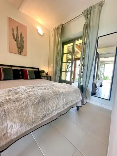 Boasting a private entrance, this air-conditioned villa comes with 1 living room, 1 separate bedroom and 2 bathrooms with a walk-in shower and a bidet. Guests will find a stovetop, a refrigerator, a dishwasher and kitchenware in the well-equipped kitchen. The villa also includes a barbecue. Featuring a terrace with garden views, this villa also features a washing machine and a flat-screen TV with streaming services. The unit has 2 beds.