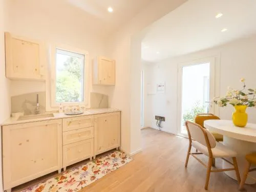 Featuring a private entrance, this air-conditioned holiday home comprises 1 living room, 1 separate bedroom and 1 bathroom with a walk-in shower and a hairdryer. The fully equipped kitchen features a stovetop, a refrigerator, kitchenware and a microwave. The holiday home provides a flat-screen TV, a washing machine, a coffee machine, a sofa as well as garden views. The unit offers 2 beds.