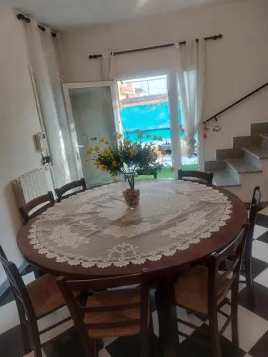 Featuring a private entrance, this air-conditioned holiday home is comprised of 3 bedrooms, 2 bathrooms and a living room. The well-fitted kitchen has a stovetop, a refrigerator, a dishwasher and kitchenware. The holiday home features tiled floors, a seating area with a flat-screen TV, a washing machine, a tea and coffee maker as well as garden views. The unit offers 7 beds.