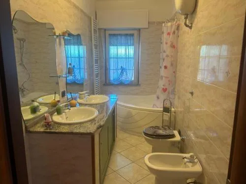 Doccia, Vasca, Cassaforte, TV, Aria condizionata, Asciugacapelli, Ferro da stiro, Angolo cottura, Frigorifero, Scrivania, Ferro e asse da stiro, Zona soggiorno, Lettore DVD, Lettore CD, WC, Forno a microonde, Lavastoviglie, Lavatrice, Videoregistratore, Bagno privato, Riscaldamento, Cabina armadio, Cucina, Vasca o doccia, TV a schermo piatto, Ingresso indipendente, Divano, Pavimento in marmo o in piastrelle, Zona pranzo, Zanzariera, Armadio o guardaroba, Forno, Tostapane, Barbecue, Bidet, Vista giardino, Prodotti per le pulizie, Macchina da caffè, Asciugamani, Tavolo da pranzo, Arredamento da esterno, Zona pranzo all'aperto, Intera unità situata al piano terra, Intera unità accessibile ai disabili, Semi-indipendente, Stand appendiabiti, Stendibiancheria, Carta igienica, Bottiglia d'acqua, Pattumiere, Calici da vino, Console videogiochi: PS4, Lettini e culle per bambini, Presa elettrica vicino al letto, Cuscino ipoallergenico, Vista cortile interno, Vista su strada tranquilla, Servizio streaming (per es. Netflix), Accesso con chiavi, Aria condizionata indipendente in ogni alloggio, Gel igienizzante per le mani