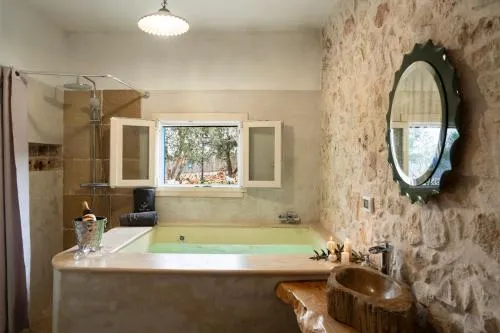 This villa's standout features are the private pool, hot tub and fireplace. Featuring a private entrance, this air-conditioned villa consists of 1 living room, 2 separate bedrooms and 2 bathrooms with a shower and a bidet. In the fully equipped kitchen, guests will find a stovetop, a refrigerator, a dishwasher and kitchenware. The villa provides a flat-screen TV, a washing machine, a seating area, a dining area as well as garden views. The unit offers 3 beds.