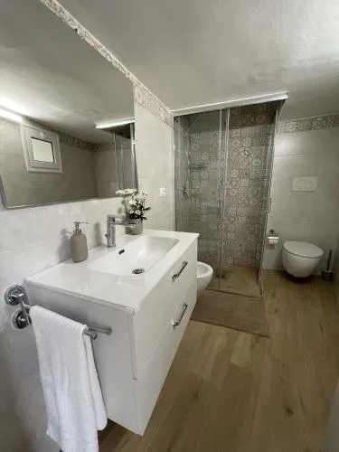 Doccia, TV, Aria condizionata, Asciugacapelli, Ferro da stiro, Angolo cottura, Frigorifero, Zona soggiorno, Prodotti da bagno in omaggio, WC, Forno a microonde, Bagno privato, Riscaldamento, Cucina, Vasca o doccia, TV a schermo piatto, Ingresso indipendente, Divano, Zona pranzo, Bollitore elettrico, Utensili da cucina, Zanzariera, Armadio o guardaroba, Piano cottura, Tostapane, Bidet, Prodotti per le pulizie, Macchina da caffè, Asciugamani, Biancheria per la casa, Tavolo da pranzo, Intera unità situata al piano terra, Indipendente, Stand appendiabiti, Stendibiancheria, Carta igienica, Divano letto, Doccia a filo pavimento, Bottiglia d'acqua, Pattumiere, Calici da vino, Lettini e culle per bambini, Shampoo, Bagnoschiuma, Cuffia da doccia, Presa elettrica vicino al letto, Adattatore, Cuscino non di piume, Vista su strada tranquilla, Accesso con chiavi, Aria condizionata indipendente in ogni alloggio, Gel igienizzante per le mani