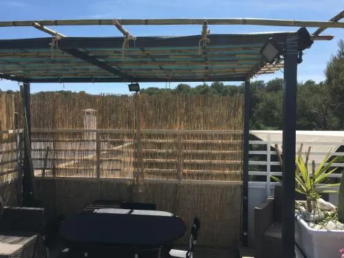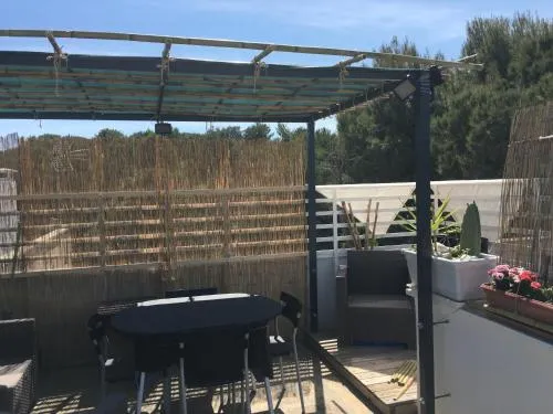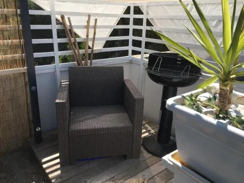 Boasting a private entrance, this air-conditioned holiday home features a kitchen, 1 bedroom and 1 bathroom with a shower and a bidet. Guests will find a stovetop, a refrigerator and kitchenware in the kitchen. The holiday home also comes with a barbecue. Featuring a terrace with garden views, this holiday home also features a coffee machine and a flat-screen TV. The unit has 1 bed.