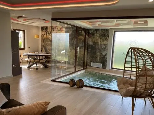 Bollitore tè/macchina caffè, Doccia, Cassaforte, TV, Aria condizionata, Asciugacapelli, Vasca idromassaggio, Ferro da stiro, Angolo cottura, Balcone, Accappatoio, Radio, Frigorifero, Scrivania, Ferro e asse da stiro, Zona soggiorno, Prodotti da bagno in omaggio, WC, Forno a microonde, Lavastoviglie, Lavatrice, Patio, Bagno privato, Riscaldamento, Pantofole, Cucina, Vasca o doccia, Servizi igienici aggiuntivi, TV a schermo piatto, Ingresso indipendente, Divano, Insonorizzazione, Pavimento in marmo o in piastrelle, Vista, Zona pranzo, Bollitore elettrico, Utensili da cucina, Sauna, Piscina privata a uso esclusivo, Asciugatrice, Armadio o guardaroba, Forno, Piano cottura, Bidet, Vista giardino, Prodotti per le pulizie, Macchina da caffè, Vista città, Terrazza, Asciugamani, Biancheria per la casa, Tavolo da pranzo, Arredamento da esterno, Zona pranzo all'aperto, Intera unità situata al piano terra, Piani superiori accessibili solo tramite scale, Indipendente, Stendibiancheria, Carta igienica, Piscina a sfioro, Piscina riscaldata, Piscina di acqua salata, Teli, Zona acqua bassa, Bottiglia d'acqua, Cioccolatini o biscotti, Pattumiere, Calici da vino, Lettini e culle per bambini, Spazzolino da denti, Shampoo, Balsamo, Bagnoschiuma, Cuffia da doccia, Presa elettrica vicino al letto, Cuscino non di piume, Vista cortile interno, Vista su strada tranquilla, Allarme antifumo, Estintori, Rilevatore di monossido di carbonio, Fonti di monossido di carbonio, Purificatori d'aria, Aria condizionata indipendente in ogni alloggio