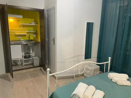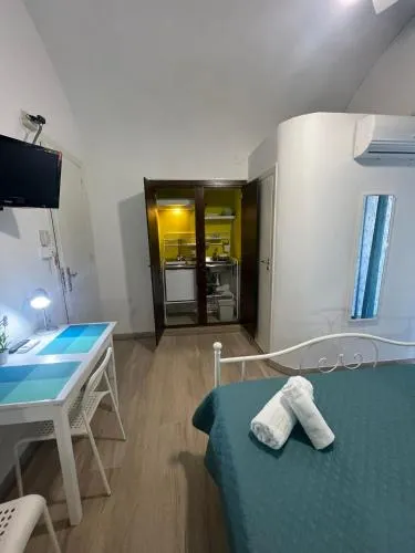 La cucina è completa di piano cottura, frigorifero e utensili. Questa camera tripla climatizzata presenta una lavatrice, un balcone con vista sulla città e un bagno privato con doccia. L’alloggio presenta 2 letti.