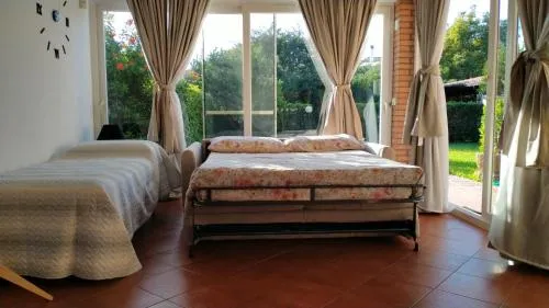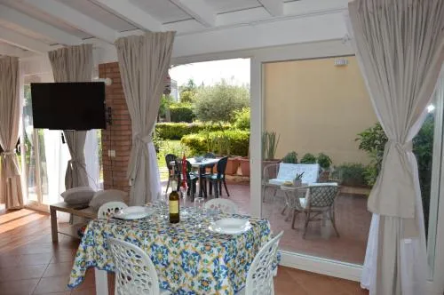 Bollitore tè/macchina caffè, Doccia, TV, Aria condizionata, Asciugacapelli, Angolo cottura, Accappatoio, Frigorifero, Zona soggiorno, Ventilatore, WC, Forno a microonde, Bagno privato, Riscaldamento, Canali satellitari, Vasca o doccia, TV a schermo piatto, Ingresso indipendente, Pavimento in marmo o in piastrelle, Vista, Zona pranzo, Bollitore elettrico, Utensili da cucina, Zanzariera, Armadio o guardaroba, Forno, Piano cottura, Tostapane, Barbecue, Bidet, Vista giardino, Prodotti per le pulizie, Macchina da caffè, Terrazza, Tavolo da pranzo, Seggiolone, Arredamento da esterno, Zona pranzo all'aperto, Intera unità situata al piano terra, Intera unità accessibile ai disabili, Indipendente, Stand appendiabiti, Stendibiancheria, Carta igienica, Giochi da tavolo/puzzle, Divano letto, Doccia a filo pavimento, Vino/champagne, Bottiglia d'acqua, Pattumiere, Calici da vino, Lettini e culle per bambini, Shampoo, Bagnoschiuma, Presa elettrica vicino al letto, Cuscino di piume, Cuscino ipoallergenico, Servizio streaming (per es. Netflix), Estintori, Rilevatore di monossido di carbonio, Fonti di monossido di carbonio, Aria condizionata indipendente in ogni alloggio, Gel igienizzante per le mani