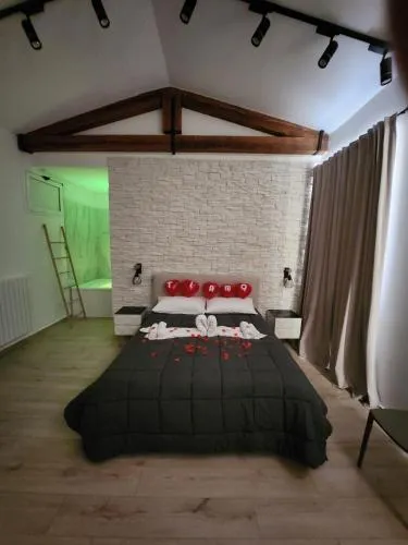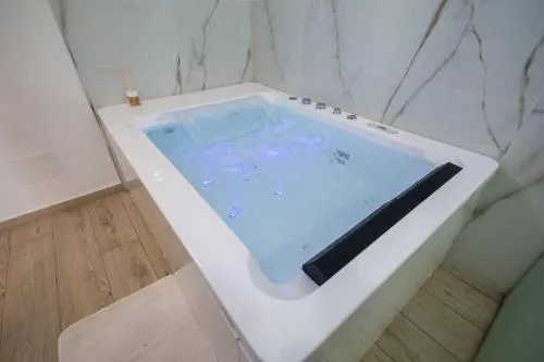 This family room features a hot tub. Featuring free toiletries, this family room includes a private bathroom with a bath, a shower and a bidet. A kitchen fitted with a stovetop, a refrigerator and kitchenware is available for cooking and storing food. The air-conditioned family room features a flat-screen TV, a tea and coffee maker, a dining area, a wardrobe as well as city views. The unit has 2 beds.