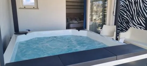 This double room's standout features are the pool with a view, hot tub and spa bath. This air-conditioned double room is comprised of a flat-screen TV with streaming services, a private bathroom as well as a terrace with mountain views. The unit has 1 bed.