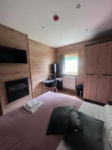 Guests will have a special experience as the apartment features a fireplace. The apartment features 2 bedrooms and 2 bathrooms with a shower and free toiletries. Guests can make meals in the kitchen that is equipped with a stovetop, a refrigerator, kitchenware and a microwave. The apartment provides a flat-screen TV with streaming services, soundproof walls, a tea and coffee maker, a wardrobe as well as mountain views. The unit offers 3 beds.