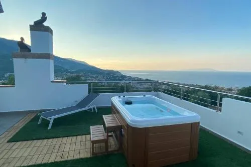 Guests will have a special experience as this holiday home offers a hot tub. Featuring a private entrance, this air-conditioned holiday home is comprised of a kitchen, 2 bedrooms and 1 bathroom with a shower and a bidet. Guests will find a stovetop, a refrigerator, an oven and a microwave in the kitchen. The holiday home also has a barbecue. The unit features a washing machine, sea views, a terrace and wine/champagne is featured for guests. The unit offers 2 beds.