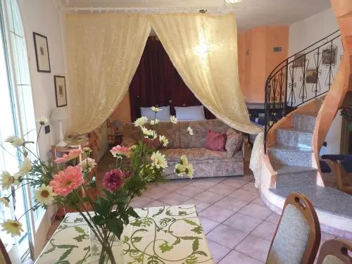 This split level apartment features 2 furnished terraces and satellite TV channels. 2 bedrooms and a living room are included, as well as an ensuite bathroom that is equipped with free toiletries and a hairdryer. BBQ facilities are also available. Please note, for stays of 3 or more nights cleaning fee comes at an extra cost of EUR 20 per person. This Two-Bedroom Apartment features a tea/coffee maker. Bambini con letti supplementari