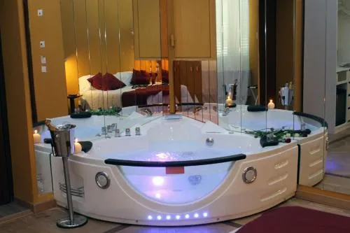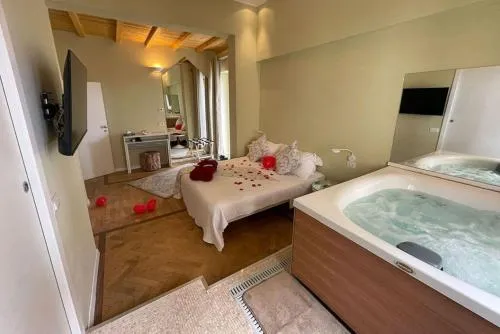 The private pool and hot tub are the special features of this double room. Featuring free toiletries and bathrobes, this double room includes a private bathroom with a bath, a shower and a bidet. This double room has air conditioning, a minibar, a flat-screen TV and a balcony. The unit has 1 bed.