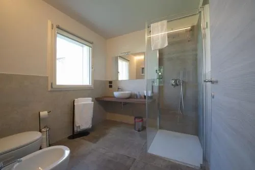 Spaziosa camera matrimoniale climatizzata con minibar e bagno privato con doccia a filo pavimento e bidet. Nella cucina troverete un piano cottura, un frigorifero, utensili e un tostapane. La camera matrimoniale è dotata di zona pranzo all'aperto, armadio, bollitore elettrico e TV satellitare con servizi di streaming. Dispone di 2 letti.
