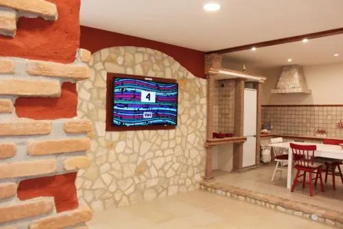 Casa vacanze dotata di camino e piscina con vista, ideale per un soggiorno eccezionale. Questa casa vacanze climatizzata presenta un ingresso indipendente, un soggiorno, 3 camere da letto separate e 2 bagni con doccia e bidet. L’unità abitativa è provvista di cucina con piano cottura, frigorifero, lavastoviglie e utensili. La casa vacanze è fornita di barbecue. La casa vacanze include interni spaziosi, una lavatrice, un set per la preparazione di tè e caffè, un’area salotto, una TV a schermo piatto con canali via cavo e la vista sul giardino. L’unità abitativa dispone di 14 letti.