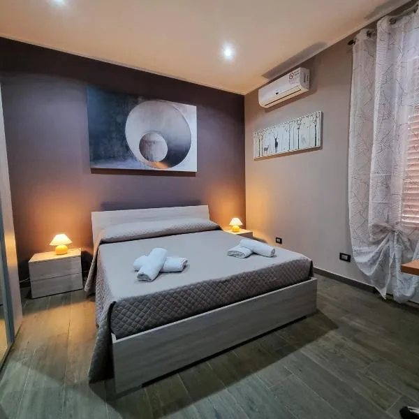 Camera matrimoniale dotata di aria condizionata, ingresso indipendente, bagno privato con doccia e terrazza vista montagna. L’alloggio presenta 1 letto.