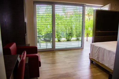 Suite climatizzata con ingresso indipendente comprende 1 soggiorno, 1 camera da letto separata e 1 bagno con bidet e doccia. Inoltre dispone di terrazza con vista sul giardino, pareti insonorizzate e TV a schermo piatto con canali via cavo. L'alloggio presenta 3 letti.