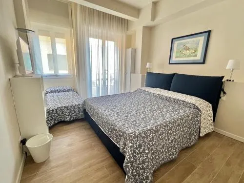 The quadruple room offers air conditioning, a seating area, a balcony with an inner courtyard view as well as a private bathroom featuring a shower. The unit offers 2 beds.