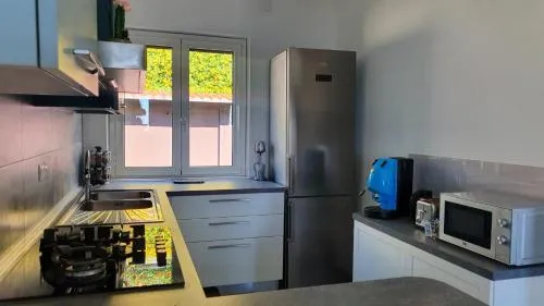 Boasting a private entrance, this air-conditioned holiday home includes 1 living room, 1 separate bedroom and 1 bathroom with a shower and a hairdryer. The fully equipped kitchen has a refrigerator, a dishwasher, kitchenware and a microwave. Featuring a terrace with sea views, this holiday home also offers a washing machine and a flat-screen TV. The unit has 3 beds.