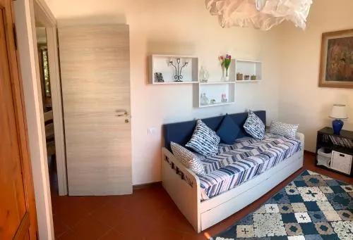 Questa casa vacanze con ingresso indipendente e area salotto comprende 2 camere da letto e 2 bagni con doccia e bidet. La cucina è completamente attrezzata con frigorifero, piano cottura, lavastoviglie e utensili. Presso questa casa vacanze troverete anche un barbecue. La casa vacanze è dotata di lavatrice, TV a schermo piatto con servizi di streaming, vista sul giardino e vino/champagne in omaggio. L’alloggio presenta 3 letti.