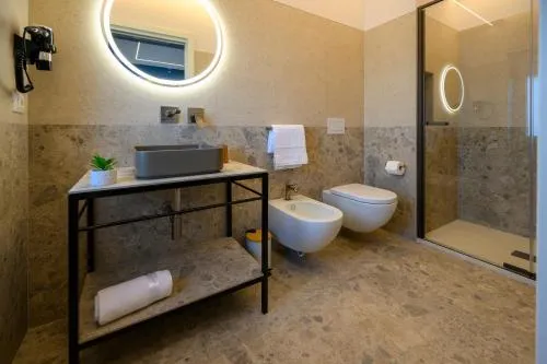 Bollitore tè/macchina caffè, Doccia, TV, Aria condizionata, Asciugacapelli, Ferro da stiro, Balcone, Frigorifero, Scrivania, Prodotti da bagno in omaggio, WC, Bagno privato, Riscaldamento, Pantofole, Vasca o doccia, TV a schermo piatto, Ingresso indipendente, Insonorizzazione, Pavimento in marmo o in piastrelle, Vista, Armadio o guardaroba, Bidet, Vista mare, Vista luogo di interesse, Prodotti per le pulizie, Terrazza, Asciugamani, Biancheria per la casa, Arredamento da esterno, Zona pranzo all'aperto, Piani superiori accessibili tramite ascensore, Carta igienica, Campanello di emergenza nel bagno, Vino/champagne, Bottiglia d'acqua, Shampoo, Balsamo, Bagnoschiuma, Presa elettrica vicino al letto, Cuscino ipoallergenico, Alloggio accessibile tramite ascensore, Estintori, Accesso con chiavi magnetiche, Aria condizionata indipendente in ogni alloggio, Gel igienizzante per le mani