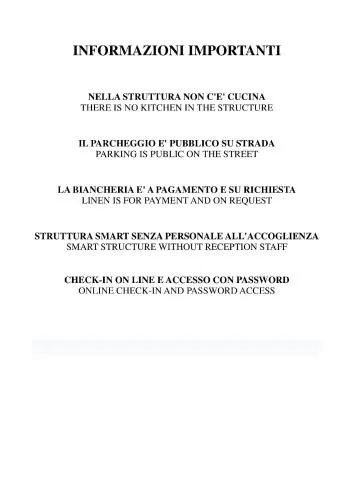 | Internet | Internet WiFi disponibile gratuitamente in tutta la struttura. |