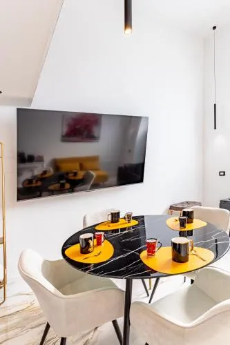 Bollitore tè/macchina caffè, Minibar, Doccia, TV, Aria condizionata, Asciugacapelli, Accappatoio, Vasca da bagno con idromassaggio, Frigorifero, Prodotti da bagno in omaggio, WC, Bagno privato, Letti lunghi (oltre 2 metri), Riscaldamento, Canali satellitari, TV a schermo piatto, Pavimento in marmo o in piastrelle, Vista, Zona pranzo, Bollitore elettrico, Armadio o guardaroba, Bidet, Asciugamani, Biancheria per la casa, Tavolo da pranzo, Intera unità situata al piano terra, Piani superiori accessibili solo tramite scale, Carta igienica, Divano letto, Vino/champagne, Bottiglia d'acqua, Cioccolatini o biscotti, Pattumiere, Calici da vino, Shampoo, Bagnoschiuma, Cuscino non di piume, Vista su strada tranquilla, Servizio streaming (per es. Netflix), Estintori, Accesso con chiavi, Aria condizionata indipendente in ogni alloggio, Gel igienizzante per le mani
