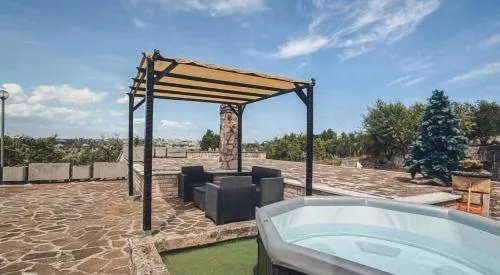 The hot tub and fireplace are the special features of this holiday home. Boasting a private entrance, this air-conditioned holiday home comes with 1 living room, 3 separate bedrooms and 2 bathrooms with a shower and a bidet. Guests will find a stovetop, a refrigerator, a dishwasher and kitchenware in the well-equipped kitchen. The holiday home also includes a barbecue. Featuring a terrace with garden views, this holiday home also features a washing machine and a flat-screen TV with streaming services. The unit has 4 beds.