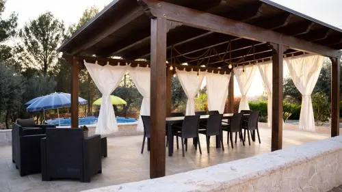 Bollitore tè/macchina caffè, Doccia, TV, Aria condizionata, Asciugacapelli, Ferro da stiro, Angolo cottura, Frigorifero, Scrivania, Ferro e asse da stiro, WC, Forno a microonde, Lavastoviglie, Lavatrice, Patio, Bagno privato, Riscaldamento, Cabina armadio, Cucina, Vasca o doccia, TV a schermo piatto, Ingresso indipendente, Pavimento in marmo o in piastrelle, Vista, Zona pranzo, Bollitore elettrico, Utensili da cucina, Zanzariera, Asciugamani/lenzuola disponibili a pagamento, Piscina privata a uso esclusivo, Armadio o guardaroba, Forno, Piano cottura, Tostapane, Barbecue, Bidet, Vista giardino, Vista piscina, Macchina da caffè, Asciugamani, Biancheria per la casa, Tavolo da pranzo, Arredamento da esterno, Zona pranzo all'aperto, Intera unità situata al piano terra, Intera unità accessibile ai disabili, Indipendente, Stand appendiabiti, Stendibiancheria, Carta igienica, Cancelletti di sicurezza per bambini, Doccia con accesso per sedie a rotelle, Doccia a filo pavimento, Teli, Bottiglia d'acqua, Cioccolatini o biscotti, Pattumiere, Presa elettrica vicino al letto, Adattatore, Cuscino non di piume, Vista cortile interno, Allarme antifumo, Estintori, Rilevatore di monossido di carbonio, Purificatori d'aria, Aria condizionata indipendente in ogni alloggio