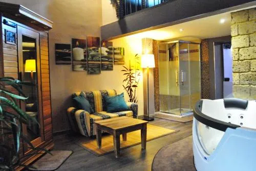 This suite features a hot tub and a sauna. Boasting a private entrance, this air-conditioned suite features 1 living room, 1 separate bedroom and 1 bathroom with a bath and a shower. The spacious suite features a tea and coffee maker, a seating area, a wardrobe, a flat-screen TV, as well as city views. The unit has 1 bed.