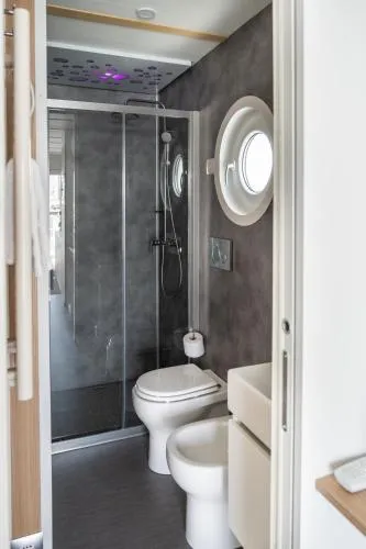Climatizzata e dotata di ingresso indipendente, questa casa mobile include un soggiorno, 2 camere da letto separate e 1 bagno con doccia e bidet. Troverete una cucina ben attrezzata con piano cottura, frigorifero, utensili e forno. Casa mobile con set per la preparazione di tè e caffè, area salotto, zona pranzo e terrazza affacciata sul mare. L’alloggio presenta 4 letti.