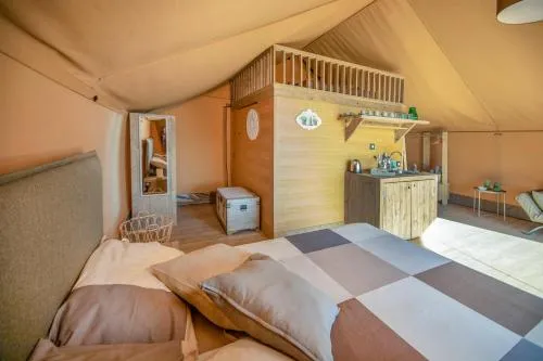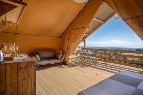 Guests will have a special experience as the tent features a pool with a view. The tent provides air conditioning, a private entrance, a terrace with sea views as well as a private bathroom featuring a shower. The unit offers 3 beds.
