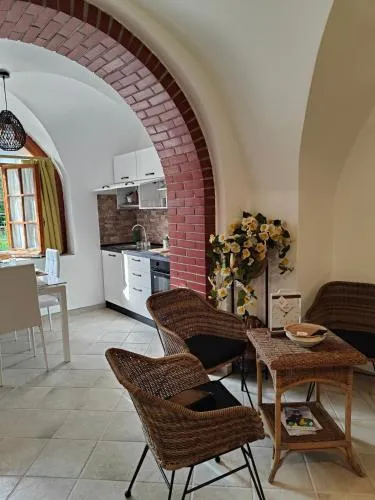 Featuring a private entrance, this air-conditioned holiday home comprises a kitchen, 1 bedroom and 1 bathroom with a walk-in shower and a bath or a shower. Meals can be prepared in the well-fitted kitchen, which comes with a stovetop, a refrigerator, a dishwasher and kitchenware. The holiday home features tiled floors, a seating area with a flat-screen TV, a washing machine, a coffee machine as well as garden views. The unit offers 2 beds.