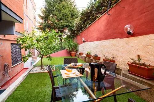 Bollitore tè/macchina caffè, Doccia, TV, Aria condizionata, Asciugacapelli, Ferro da stiro, Angolo cottura, Accappatoio, Frigorifero, Ferro e asse da stiro, Zona soggiorno, Prodotti da bagno in omaggio, WC, Forno a microonde, Patio, Bagno privato, Riscaldamento, Canali satellitari, Cucina, Vasca o doccia, TV a schermo piatto, Divano, Parquet o pavimento in legno, Zona pranzo, Bollitore elettrico, Utensili da cucina, Zanzariera, Armadio o guardaroba, Forno, Piano cottura, Tostapane, Bidet, Vista giardino, Prodotti per le pulizie, Macchina da caffè, Terrazza, Tavolo da pranzo, Arredamento da esterno, Zona pranzo all'aperto, Intera unità situata al piano terra, Appartamento privato in edificio, Stand appendiabiti, Stendibiancheria, Carta igienica, Giochi da tavolo/puzzle, Libri, DVD o musica per bambini, Divano letto, Bottiglia d'acqua, Cioccolatini o biscotti, Pattumiere, Calici da vino, Lettini e culle per bambini, Shampoo, Balsamo, Bagnoschiuma, Presa elettrica vicino al letto, Cuscino ipoallergenico, Vista cortile interno, Servizio streaming (per es. Netflix), Allarme antifumo, Estintori, Rilevatore di monossido di carbonio, Aria condizionata indipendente in ogni alloggio